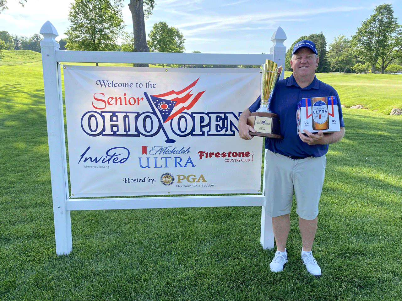 The soon-to-be 54-year old rolled in an 8-foot birdie putt on the first playoff hole at Firestone Country Club to defeat Cincinnati’s Sam Arnold, PGA and become the first man to win four consecutive Senior Open titles in the 37th playing of the event sponsored by Michelob Ultra and conducted by the Northern Ohio Section of the Professional Golfers Association of America. Presenting Sponsors were Invited (formerly Club Corp), Firestone Country Club, and House of LaRose.