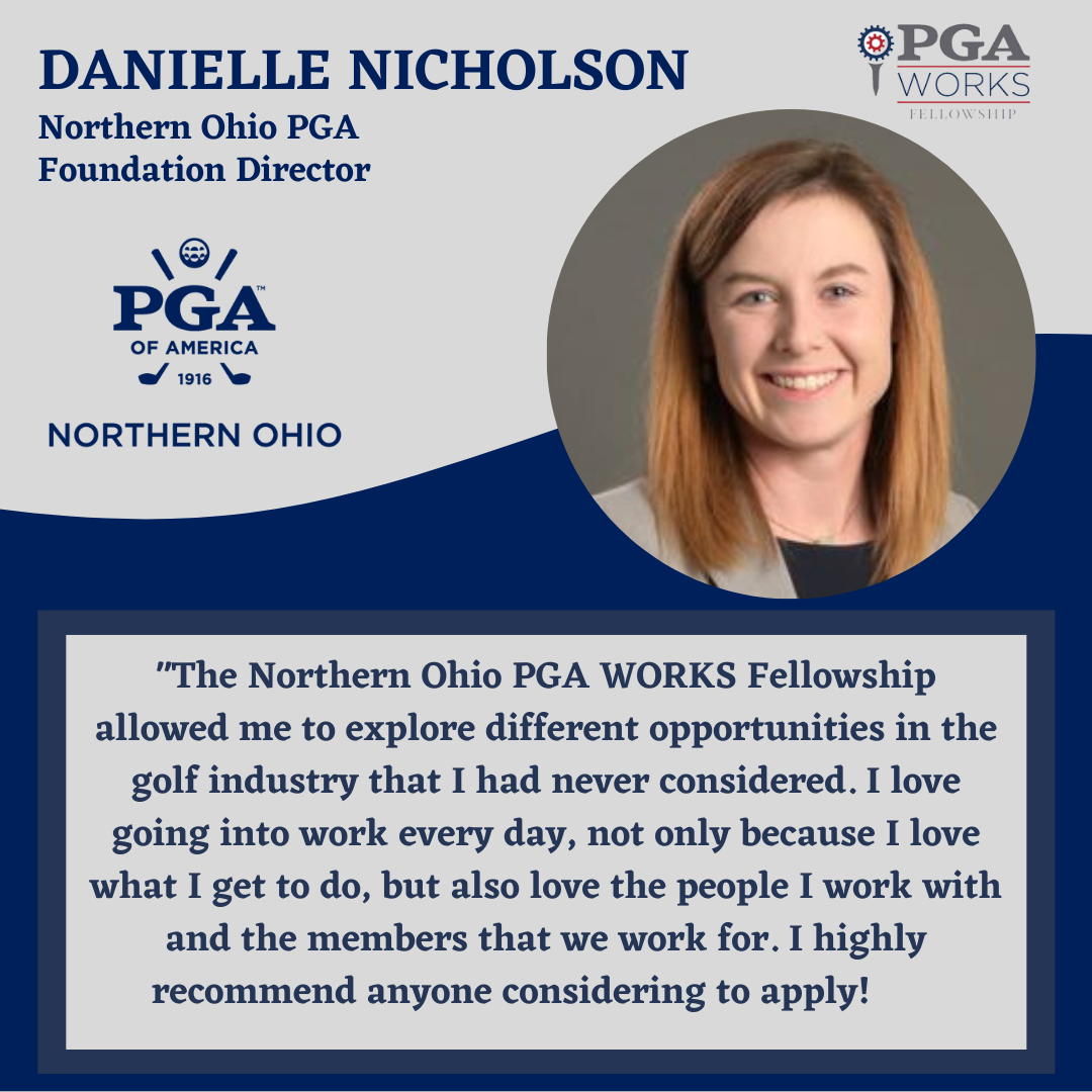 Danielle Monas (Nicholson) – 2020 Northern Ohio PGA WORKS Fellow; Current NOPGA Foundation Director at the Northern Ohio PGA Section